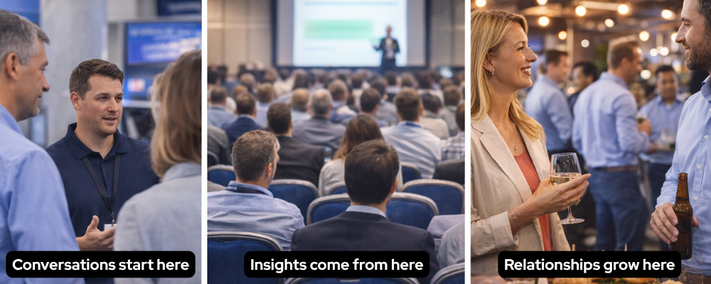 Some of the most valuable moments happen outside of it. In sessions. In hallways. At dinners. In conversations that aren’t scheduled.